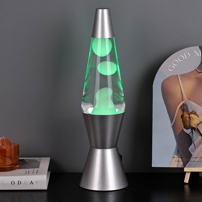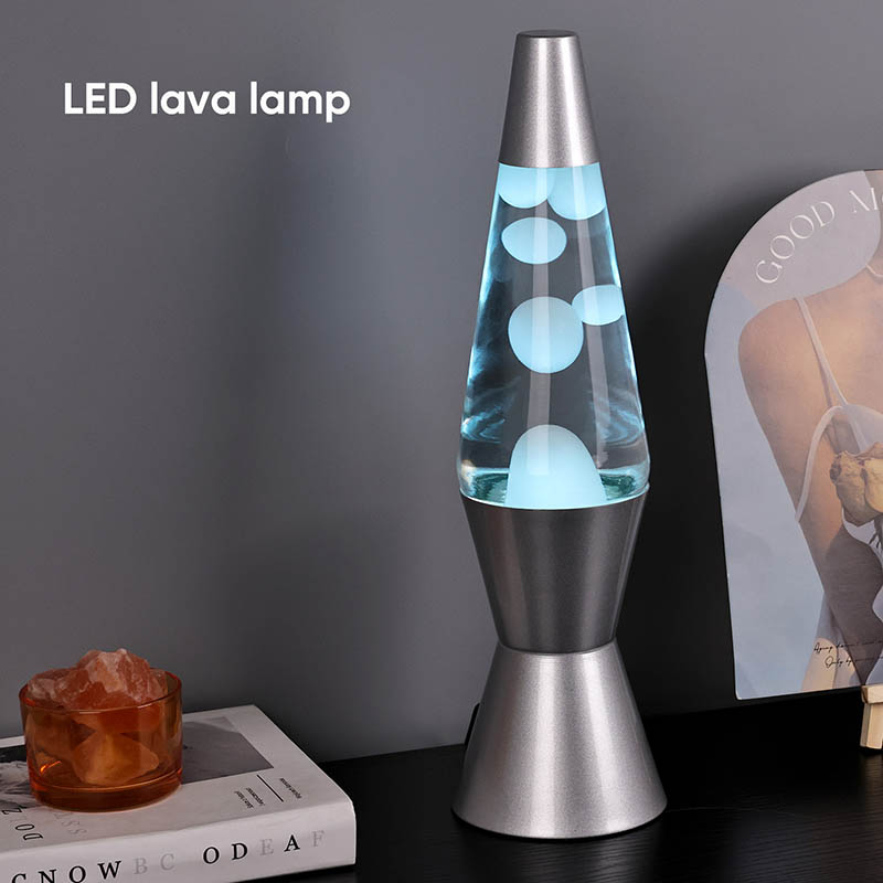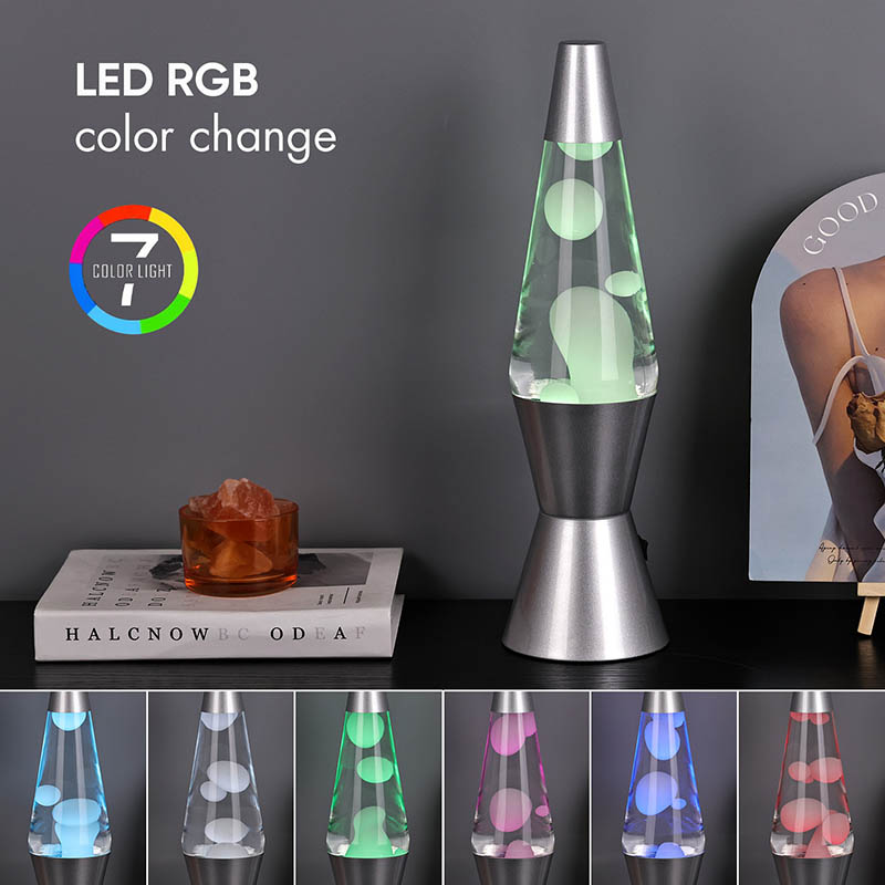 A lâmpada de lava LED RGB de 15 polegadas tem 7 cores alteradas na parte inferior. a cor é branca com a lava.