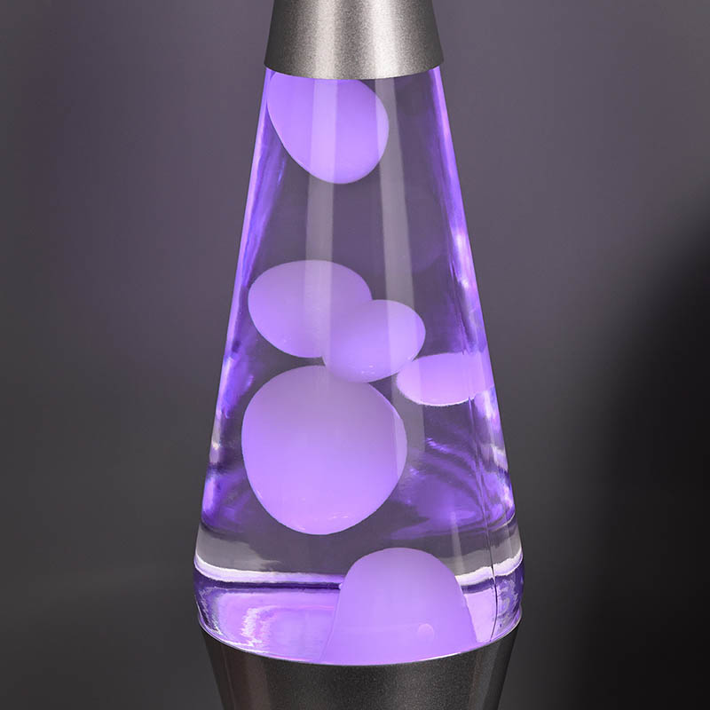 CC 24VA lâmpada de lava LED RGB de 15 polegadas tem um plugue de alta potência em roxo. Concha de alumínio roxo, cera roxa, quando acesa, lâmpada de cera roxa pura.