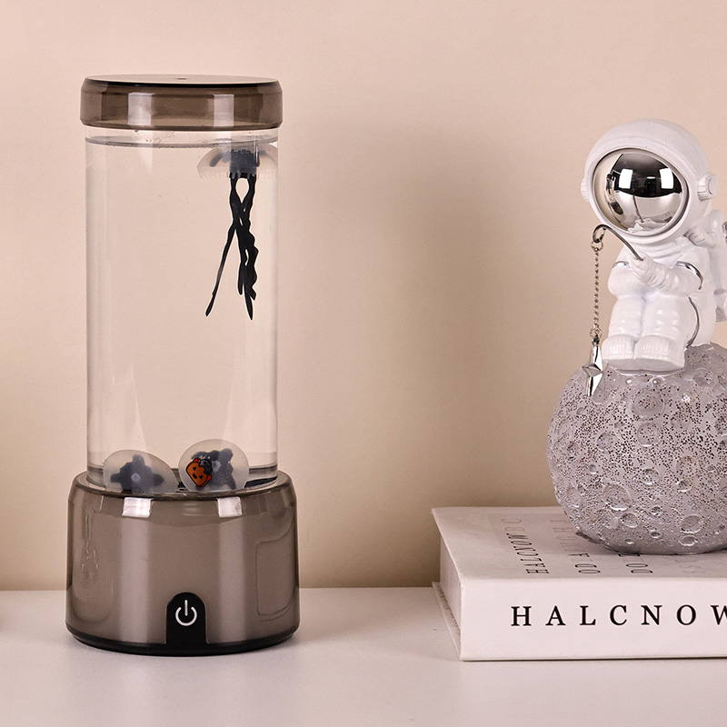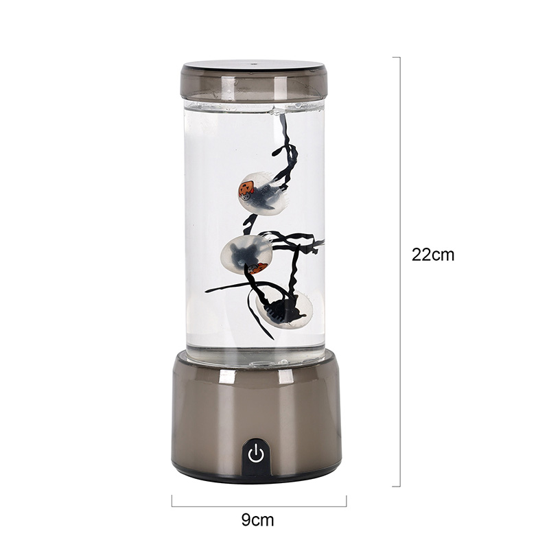 Por favor, adicione água primeiro e, em seguida, adicione 3-5ml de detergente de louça no tanque para fazer as águas-vivas se moverem suavemente. (Por favor, não adicione o sabão dissolvido)