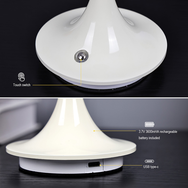 As lindas lâmpadas LED para casa com abajur de cogumelo têm uma base de metal e um poste de metal, junto com um abajur de plástico. A superfície do abajur é encerada e lisa, com um toque muito bom, lembrando um cogumelo