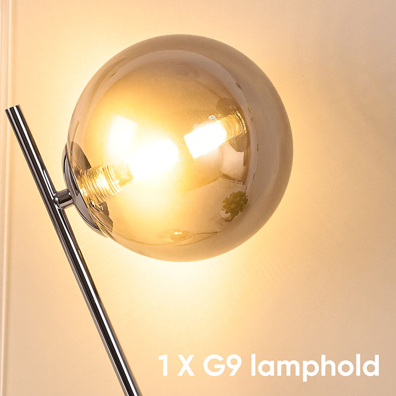 A luminária de mesa é feita em bola de vidro em lâmpadas led