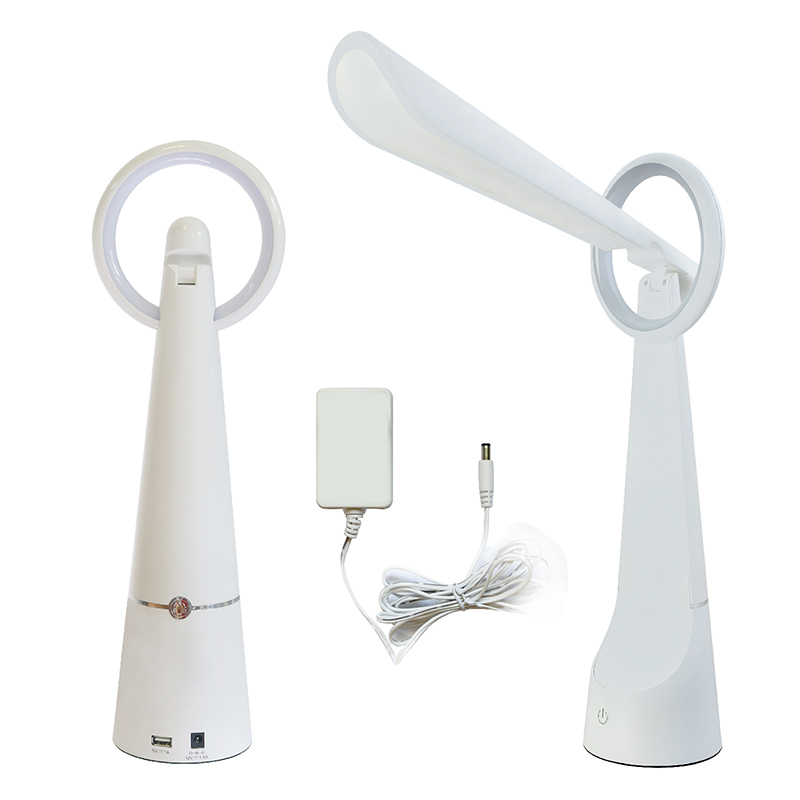 Há uma porta de carregamento USB na lâmpada da mesa traseira