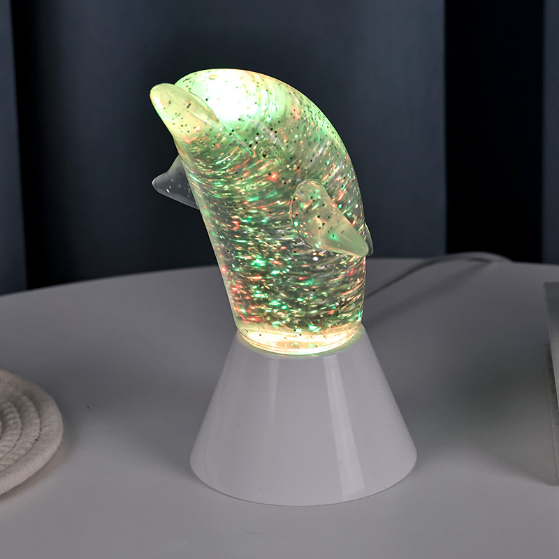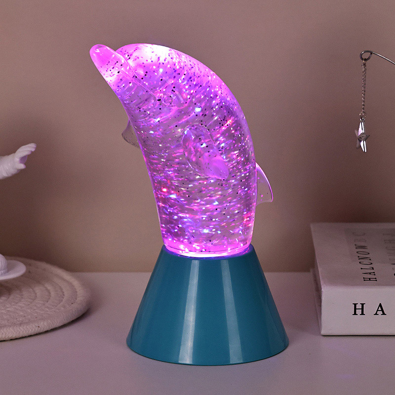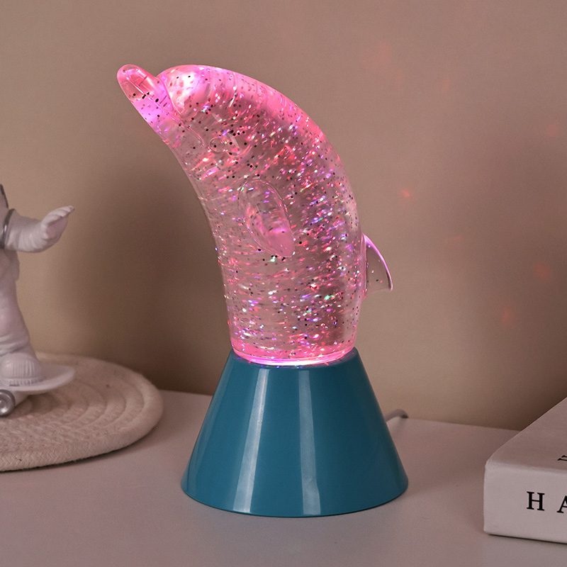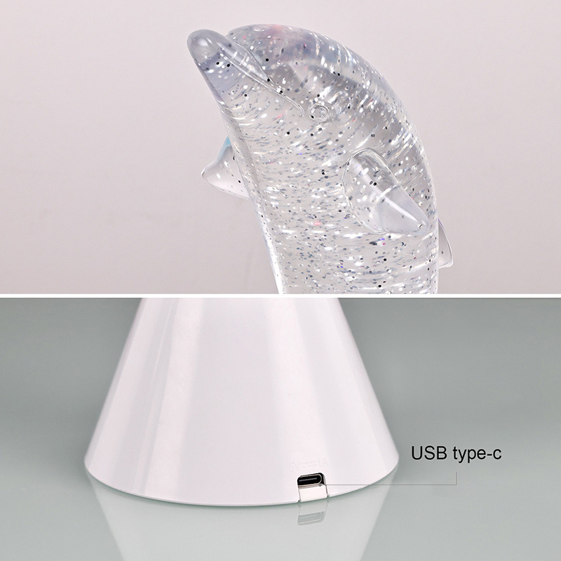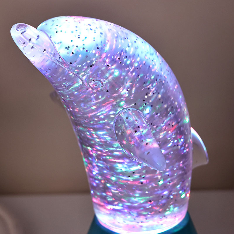 Dolphin Kid Gift Glitter RGB Nigh Light foi desenhado no formato de um lindo golfinho, com linhas suaves e detalhes requintados restaurando perfeitamente a postura ágil dos golfinhos. Dentro da concha transparente do golfinho, em forma de lantejoulas. Movimentos irregulares podem refletir lindamente as cores, criando uma atmosfera pacífica e misteriosa. Cada vez que você olha para esta lâmpada, parece que está em um oceano profundo. Entre eles, sinta o encanto infinito da natureza Equipado com tecnologia avançada de iluminação de mudança de cor RGB, permitindo alternar livremente entre várias cores. Seja laranja quente, rosa romântico ou azul sereno,
