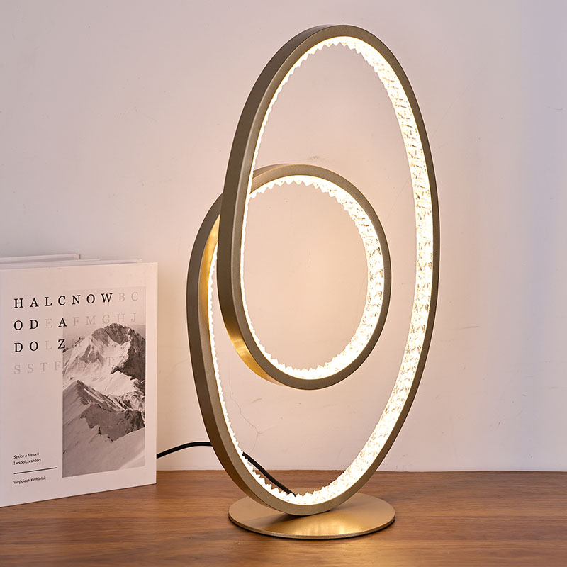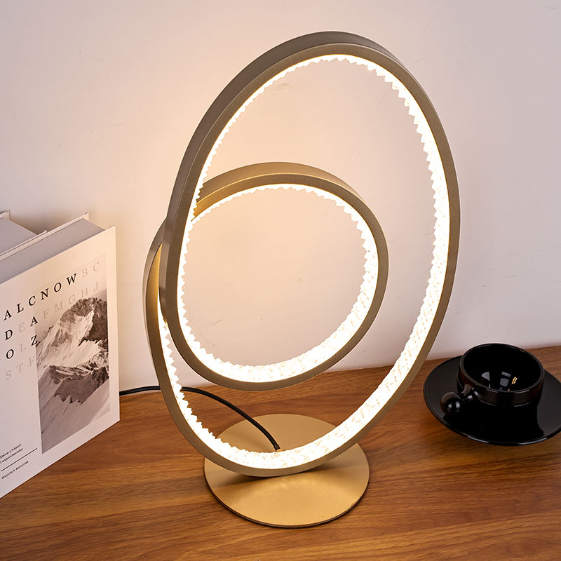 A luminária de mesa LED com sombra circular para decoração de casa é simples e luxuosa, com formato curvo irregular. O candeeiro de mesa LED para corpo de decoração de casa é composto por uma luz semi LED e um suporte semi metálico. A luminária de mesa led para decoração de casa é muito adequada para colocar no balcão ou cabeceira de um shopping ou hotel, pois o design é muito luxuoso e muito adequado para decoração