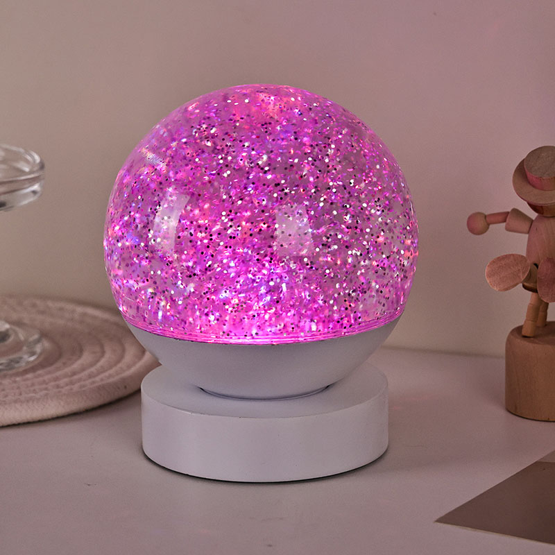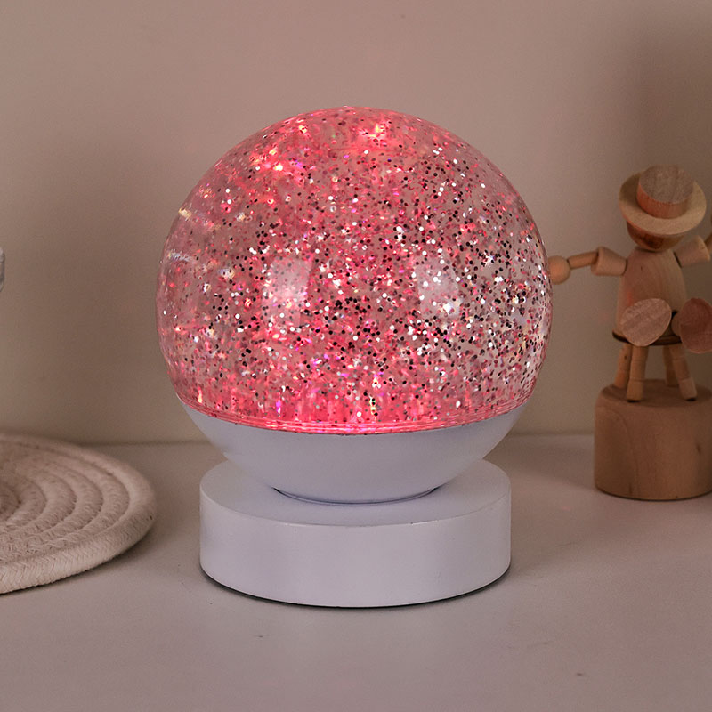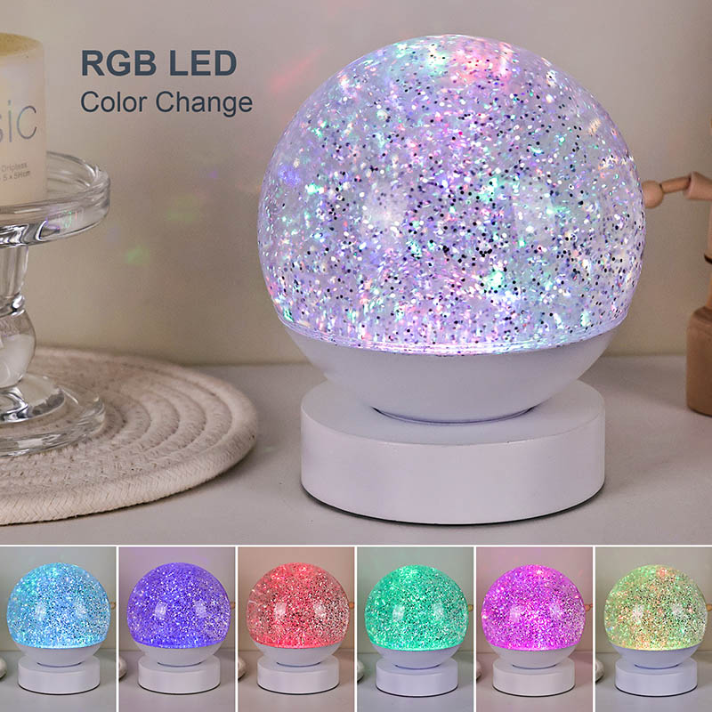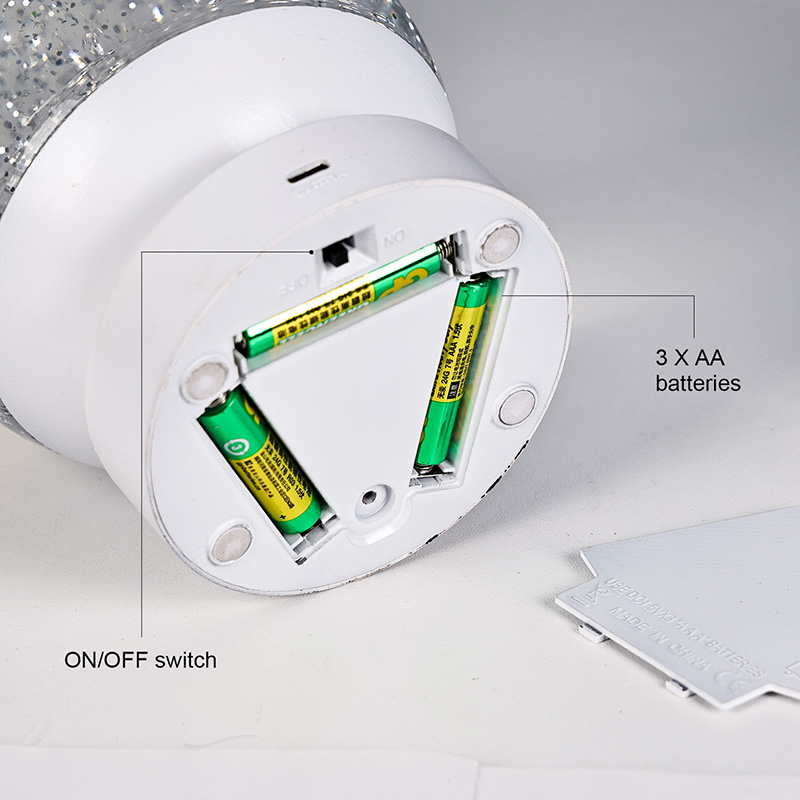 A Lâmpada Led RGB Glitter Decor é feita de material acrílico de alta qualidade, apresentando uma esfera translúcida com excelente transmissão de luz. A base é confeccionada em plástico ABS ecológico, garantindo estabilidade, durabilidade e segurança sem substâncias tóxicas. Ele funciona com três baterias AAA integradas (pilhas vendidas separadamente), eliminando a necessidade de uma tomada elétrica e oferecendo uso conveniente. Perfeito para colocar ao lado da cama, mesa ou no canto dos brinquedos das crianças. Com um simples interruptor de toque, a luz pode ser facilmente ligada ou desligada, tornando-a fácil de usar, mesmo para crianças operarem de forma independente.