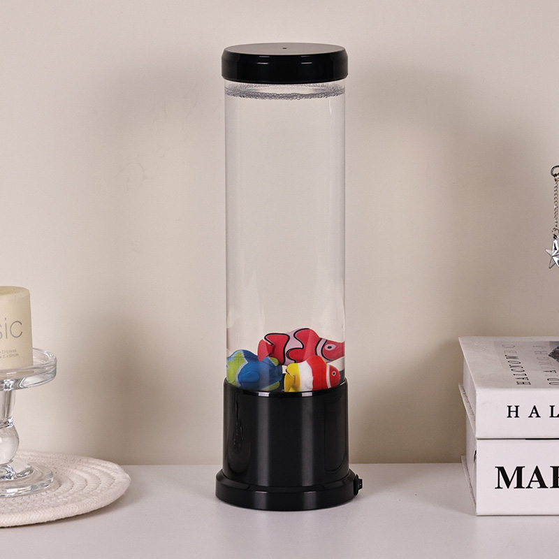 Traga a beleza hipnotizante de um mundo subaquático para sua casa ou escritório com nossa inovadora lâmpada decorativa LED simulada para tanque de peixes. Projetado tanto para apelo estético quanto para conveniência prática, este elegante candeeiro preto para arranha-céus apresenta um efeito realista de aquário, completo com peixes animados coloridos e decorações brilhantes de águas-vivas que criam um ambiente relaxante e tranquilo em qualquer espaço.