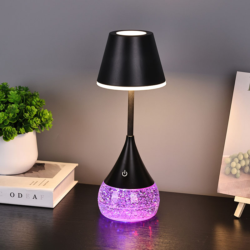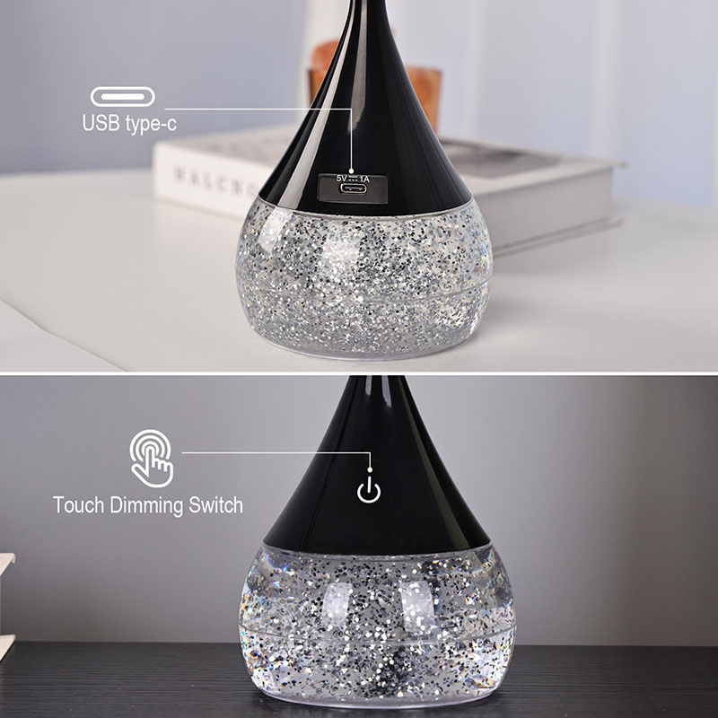 Dentro da base, uma garrafa clara abriga um líquido que se move irregularmente, criando um efeito visual cativante. Lâmpada de mesa LED de base líquida com forma de metal não é um líquido comum; Foi especialmente formulado para criar uma dança hipnotizante de Shimmer e Swirl. À medida que o líquido se move, reflete a luz em um padrão em constante mudança, criando uma experiência visual em constante evolução.