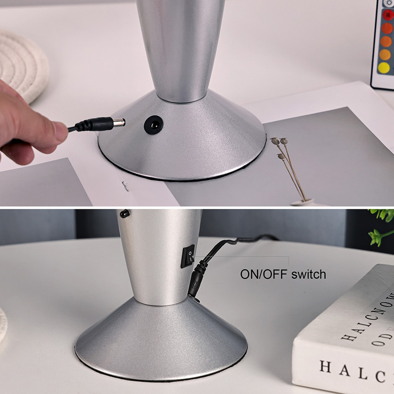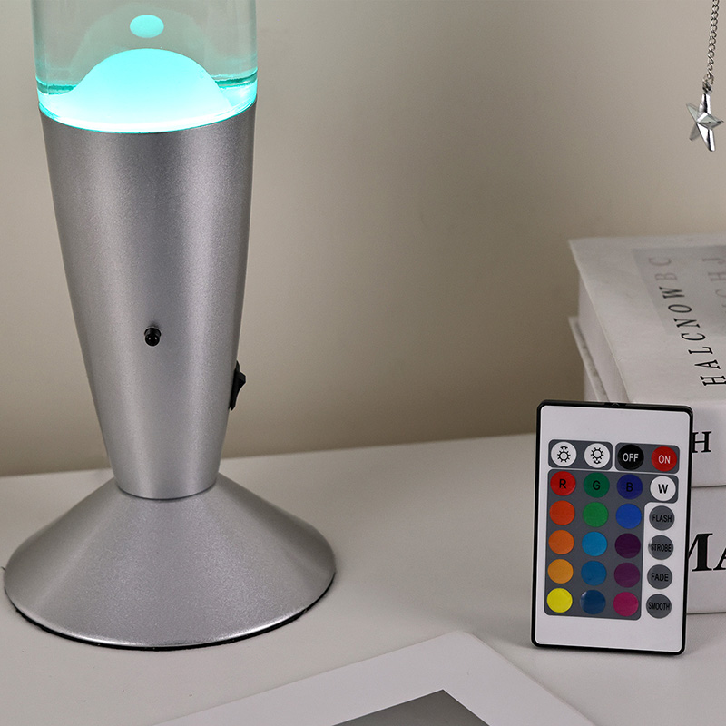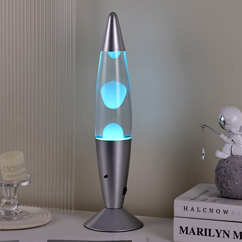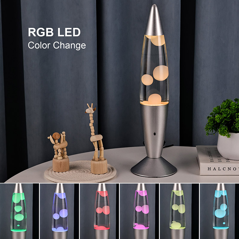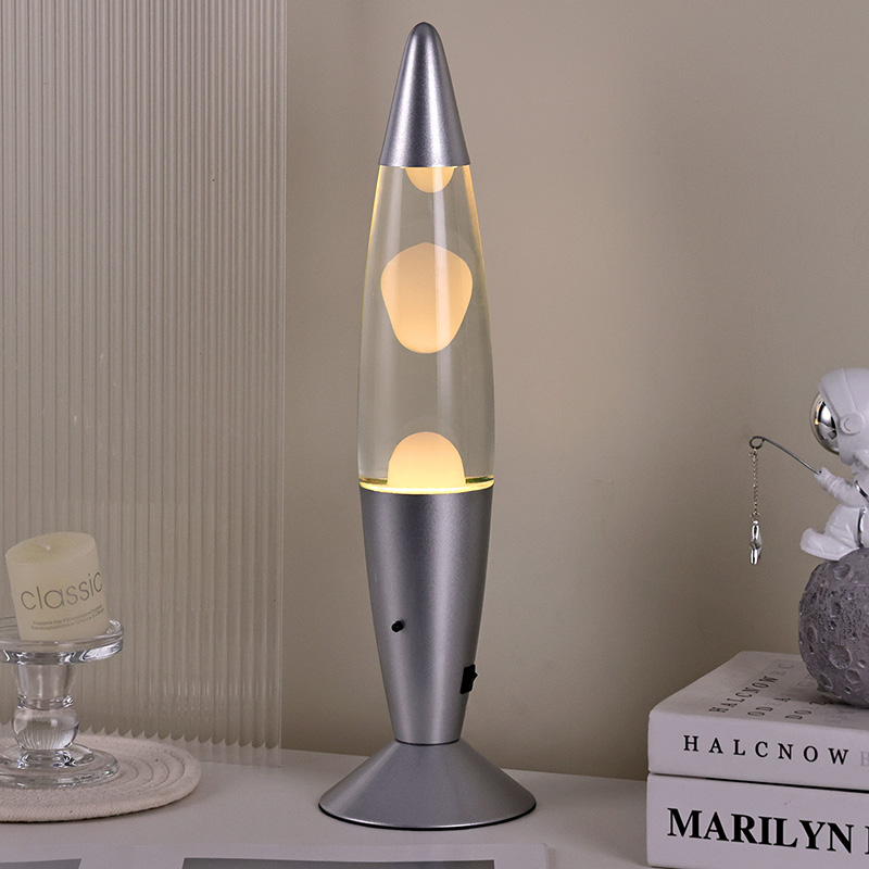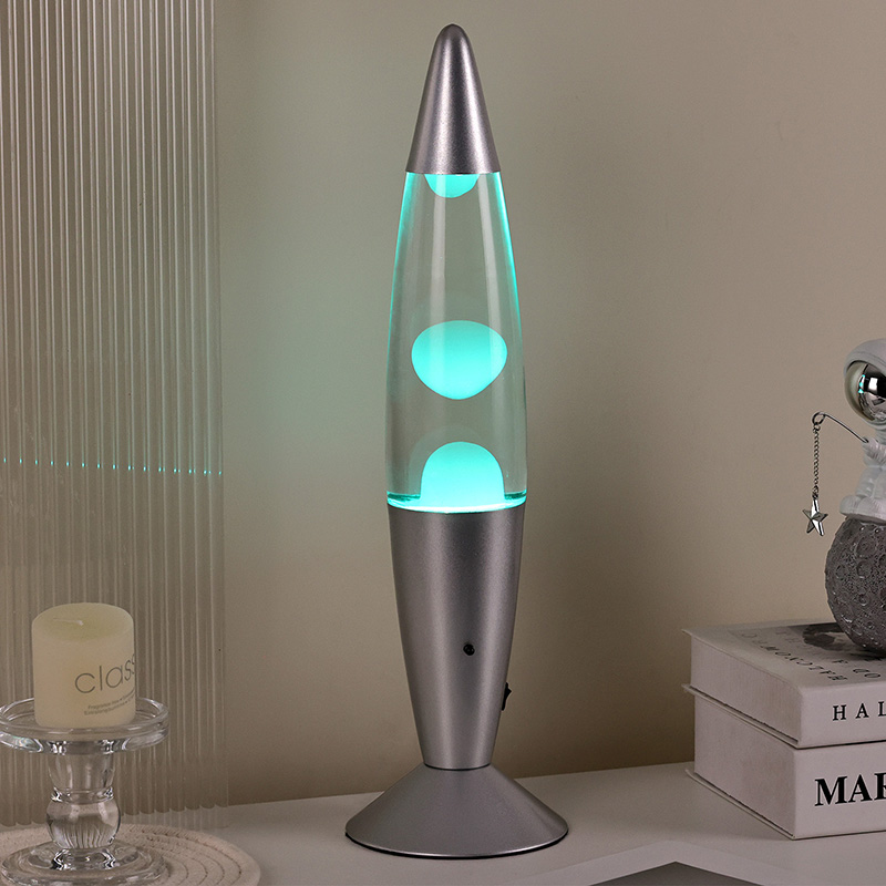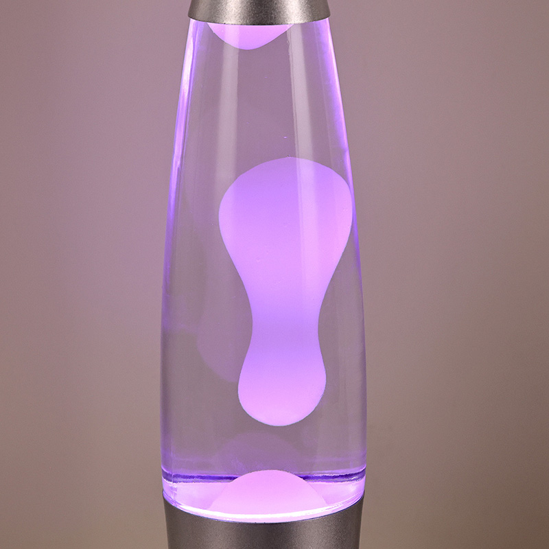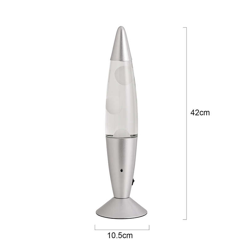 A lâmpada de lava de 16" com controle do interruptor inferior apresenta um design clássico de bala, com uma concha de metal prateado combinada com um corpo de garrafa de vidro transparente, simples, mas elegante. As luzes coloridas no interior passam pelo derretimento que flui