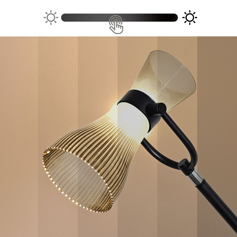 A moderna luminária de chão LED com abajur de vidro está equipada com fontes de luz LED avançadas que emitem luz suave e brilhante, protegendo eficazmente os olhos e reduzindo a fadiga e o desconforto causados pelo uso prolongado dos olhos.