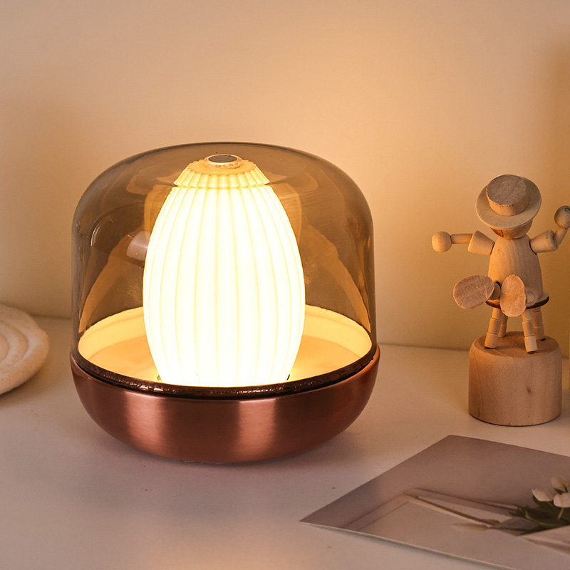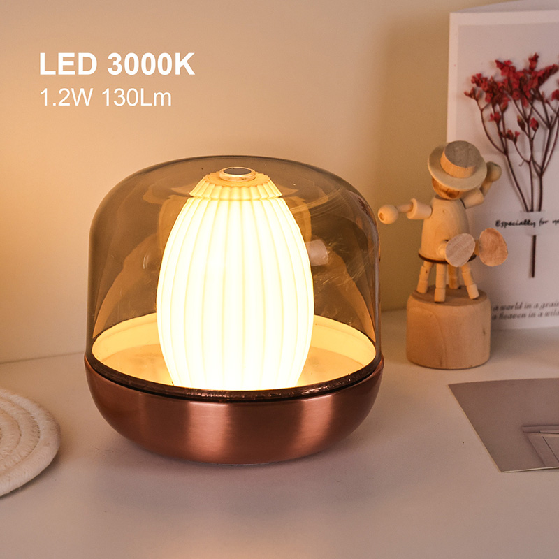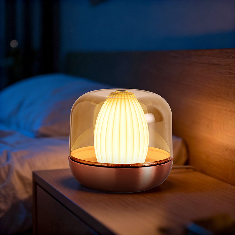 A inspiração do design desta luz noturna com brilho quente deriva da fusão da natureza e da estética arquitetônica. Com sua forma geral arredondada e rechonchuda, lembra uma pedra preciosa âmbar meticulosamente esculpida. Colocado sobre uma secretária ou mesa, torna-se facilmente um ponto focal visual. A camada externa apresenta uma cobertura de alta transparência que não apenas protege a fonte de luz interna, mas também cria camadas únicas de luz e sombra por meio da refração, produzindo um efeito visual onírico.