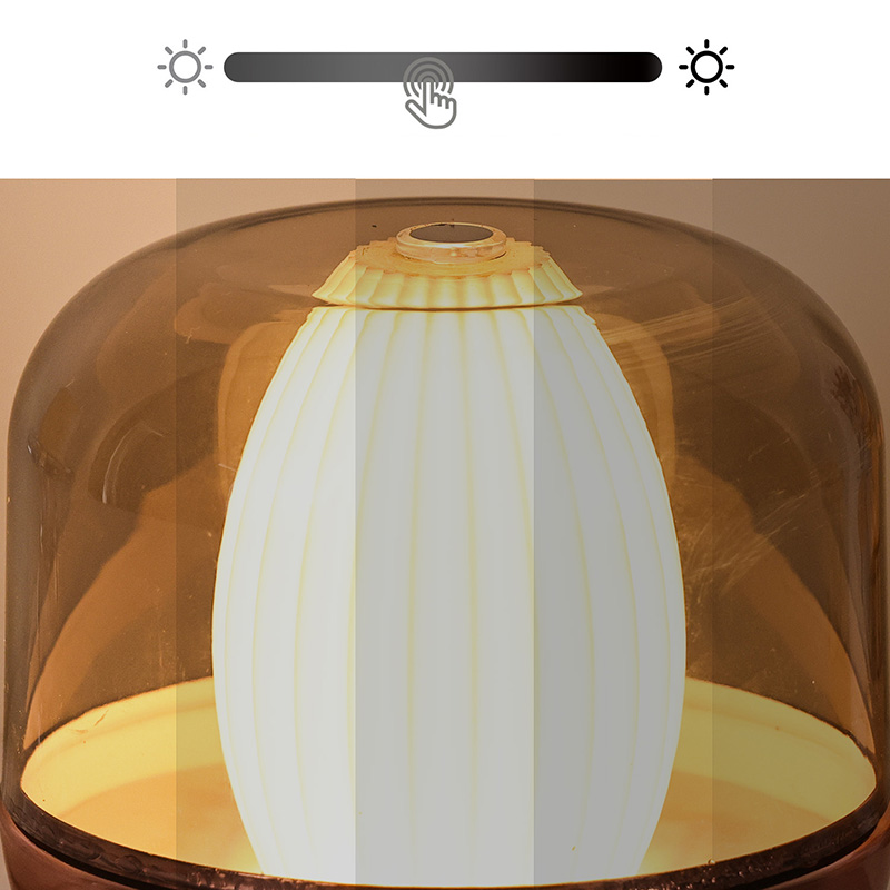A parte superior possui uma área sensível ao toque, permitindo ligar/desligar a luz com um único toque e alternar os modos de brilho com outro toque. O design sem botões melhora a aparência geral elegante
