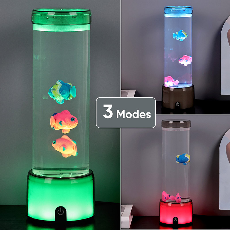 A base da lâmpada peixe é equipada com uma base transparente que muda de cor RGB, que pode emitir múltiplas cores de luz, fazendo com que todo o corpo da lâmpada apresente um efeito colorido. Cor depois de ligar o interruptor