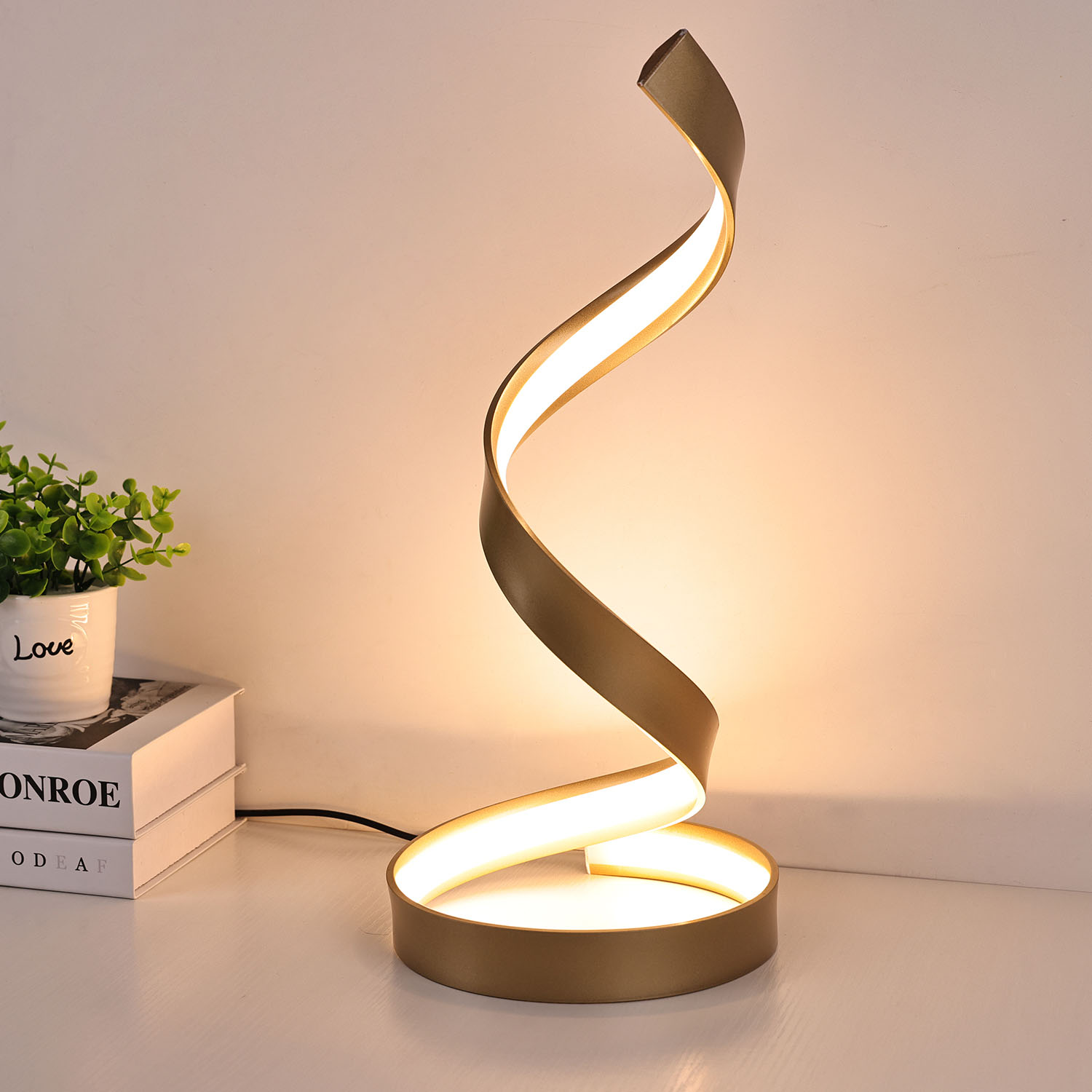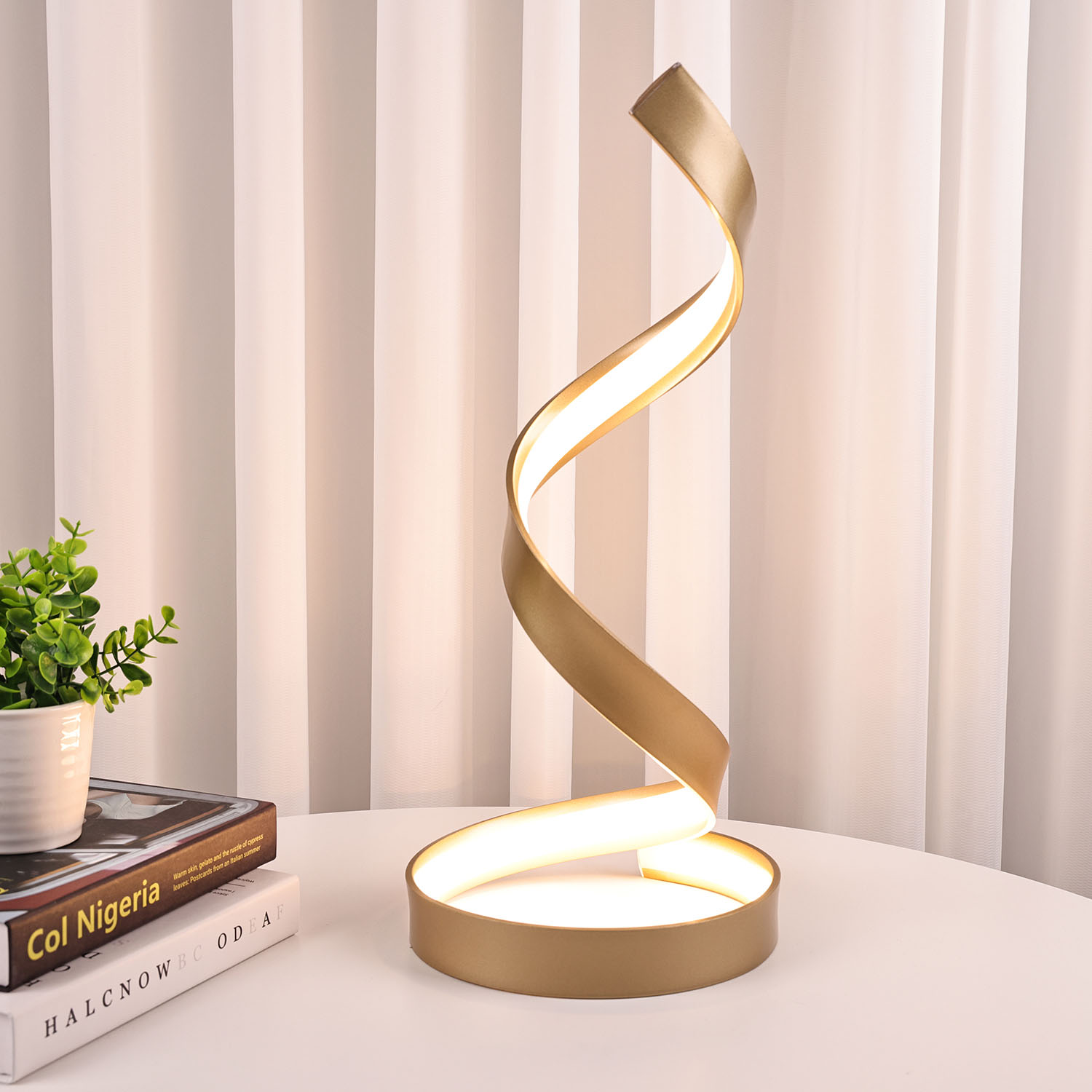 A luminária de mesa LED nórdica com abajur para decoração de casa é simples e luxuosa, com formato curvo irregular. O candeeiro de mesa LED para corpo de decoração de casa é composto por uma luz semi LED e um suporte semi metálico. A luminária de mesa led para decoração de casa é muito adequada para colocar no balcão ou cabeceira de um shopping ou hotel, pois o design é muito luxuoso e muito adequado para decoração
