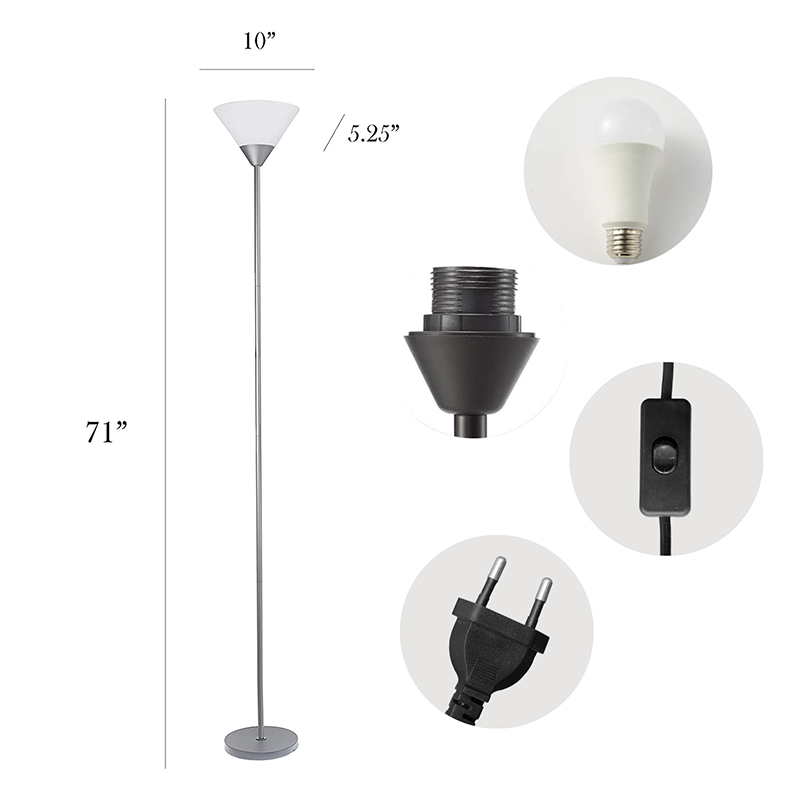 Dimensões da lâmpada de chão LED, há tampa da lâmpada, tampa, interruptor, lâmpada