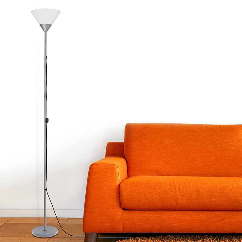 Fabricado com materiais de alta qualidade, o Candeeiro de pé LED versátil apresenta uma estrutura metálica resistente e um abajur de plástico durável. O seu design minimalista garante que se adapta perfeitamente a qualquer decoração de interiores, seja moderna, tradicional ou eclética. A estrutura de haste única da lâmpada proporciona estabilidade e uma estética limpa, enquanto a sombra cônica direciona a luz para cima, criando um ambiente aconchegante.