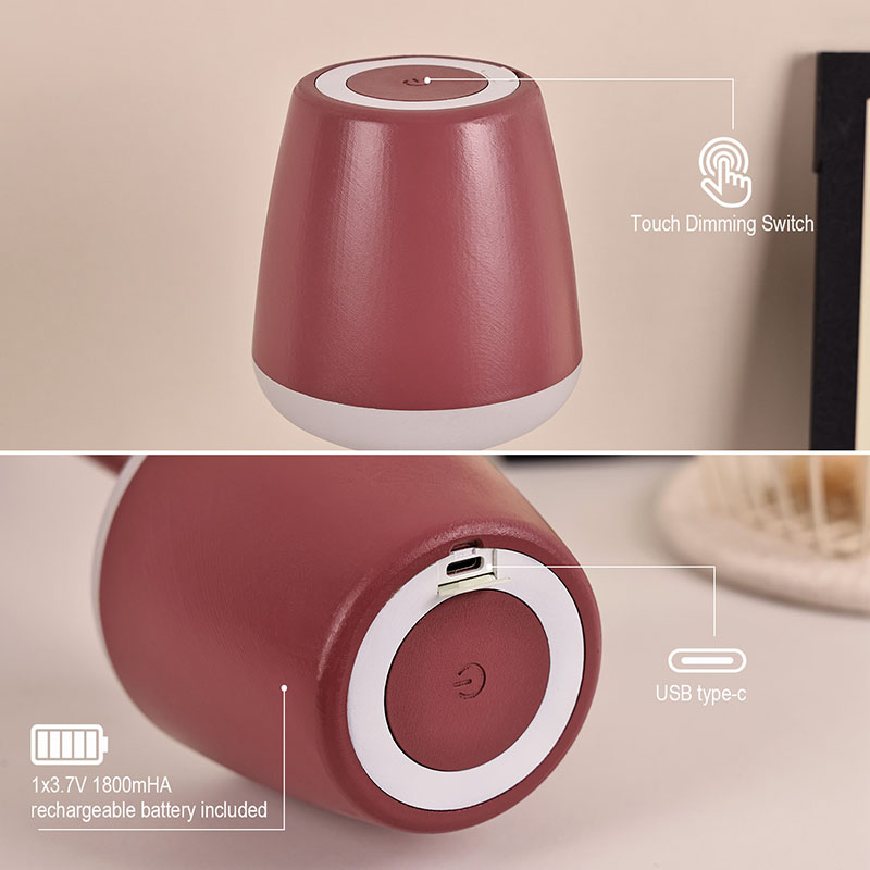 A lâmpada de mesa LED com abajur de vidro alto vinho tinto está equipada com um conveniente sistema de fonte de alimentação por bateria, o que significa que você não precisa mais se preocupar em encontrar uma tomada. Esteja você lendo temporariamente no sofá da sala de estar ou criando uma atmosfera acolhedora em uma noite de acampamento ao ar livre, basta instalar a bateria com cuidado e ela acenderá imediatamente, trazendo brilho