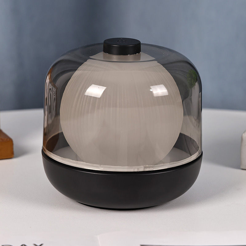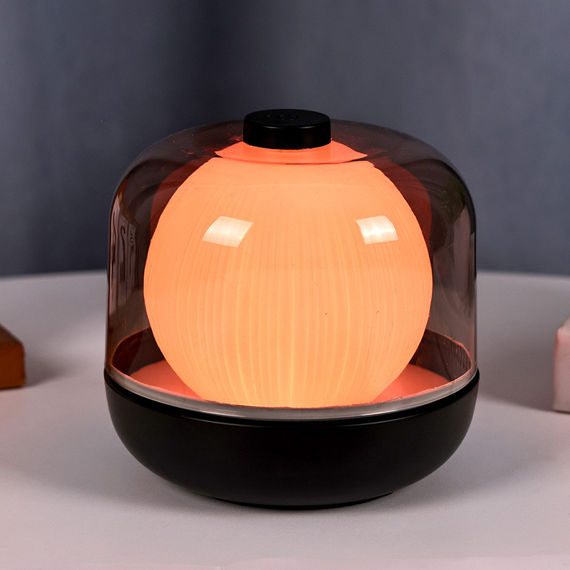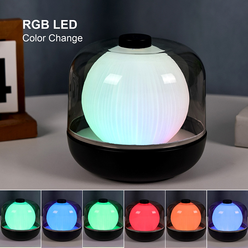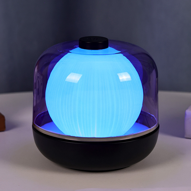 Dentro do orbe, a avançada tecnologia LED RGB permite transições suaves de cores e modos de iluminação dinâmicos, mudando facilmente de azuis e roxos calmantes para laranjas e vermelhos quentes para se adequar ao seu humor ou ambiente.