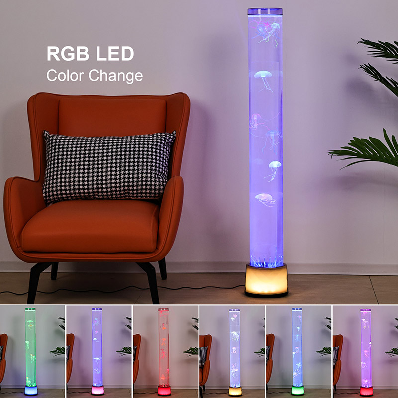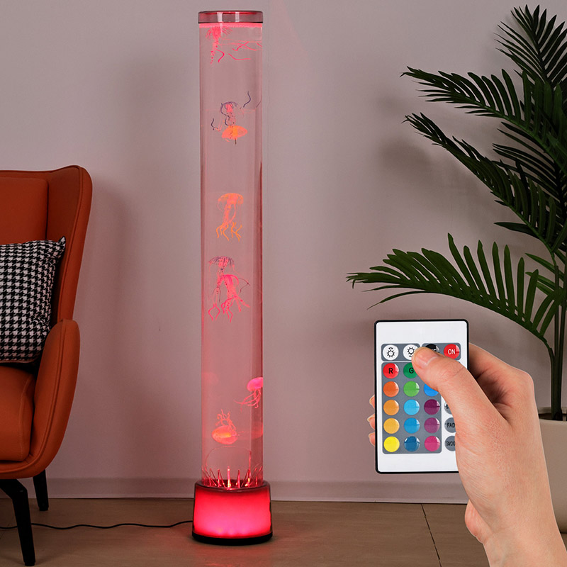 39,5*39,5*113CMA lâmpada RGB Floor Jellyfish é uma peça criativa de decoração para casa que combina tecnologia moderna com estética natural. Com os seus efeitos de luz e sombra sonhadores e o design realista das águas-vivas, acrescenta um ambiente oceânico misterioso e tranquilo aos espaços interiores. Todo o design é feito em acrílico de alta transparência, apresentando um formato esguio e elegante que lembra um mundo subaquático em miniatura, imergindo você como se estivesse nas profundezas do mar.