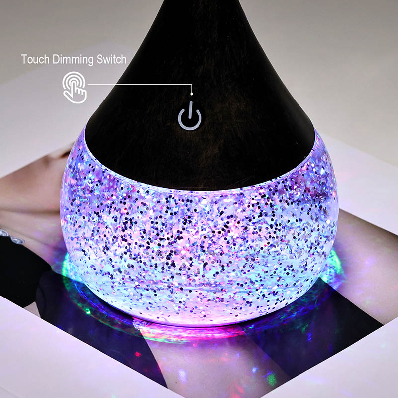 RGB Glitter Bottle Led Desk Lamp com tampa curva