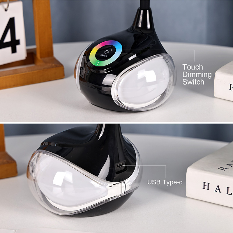 Além da função de iluminação, a maior característica da luminária de mesa é que ela possui dois olhos grandes que podem mudar de cor em RGB na parte inferior, assim como uma libélula, tornando-a muito adequada para decoração e lazer.