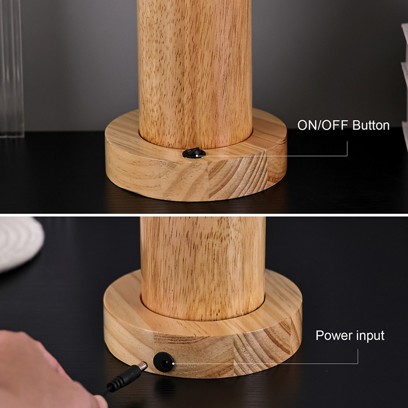 A base do candeeiro de mesa Tower shade glitter é feita de madeira de alta qualidade, com uma textura quente e natural. A combinação perfeita de base de madeira e tecnologia moderna não só melhora o desempenho geral
