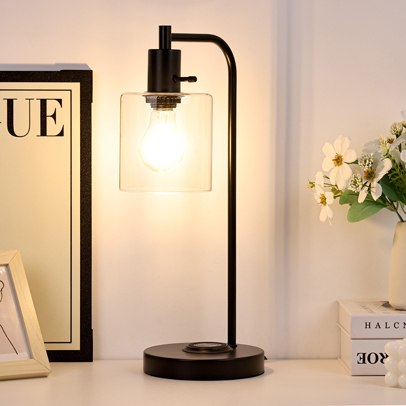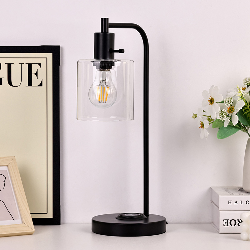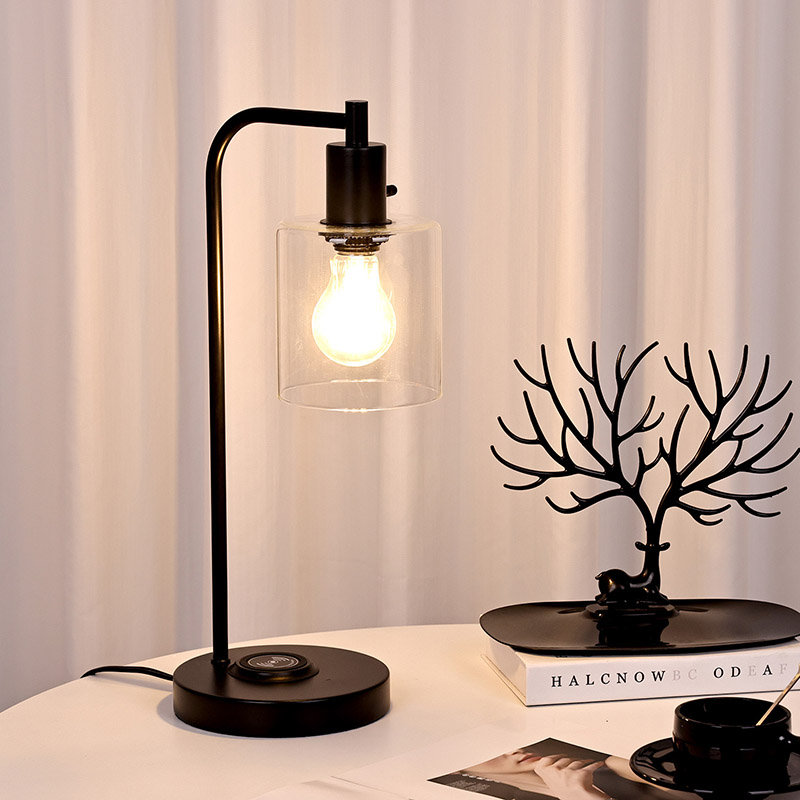 Candeeiro de mesa tradicional E26 E27 com abajur de vidro para telefone recarregável com carregador sem fio