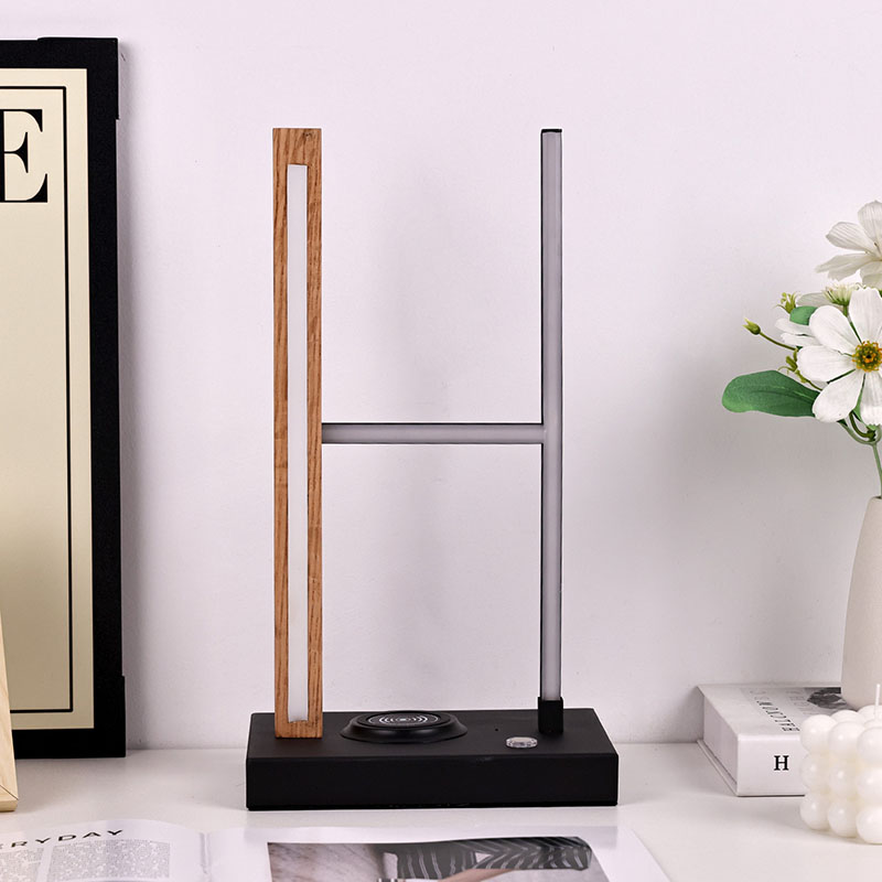 Candeeiro de mesa LED com carregador sem fio com sombra H tem carregador sem fio para telefone e carregador de porta USB