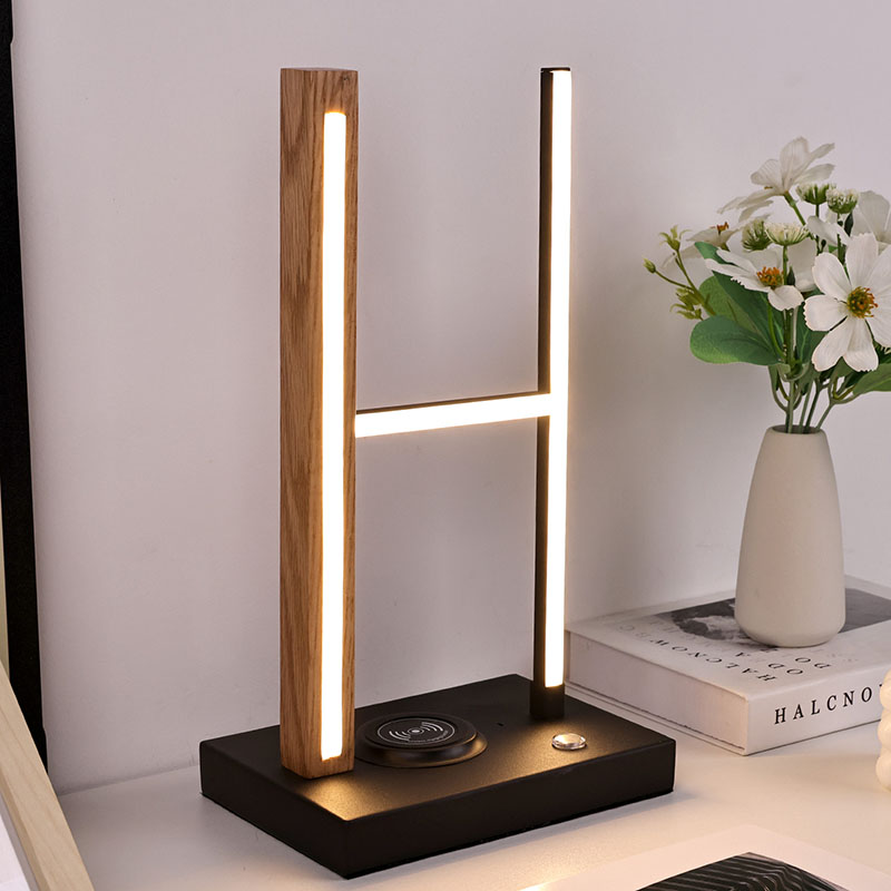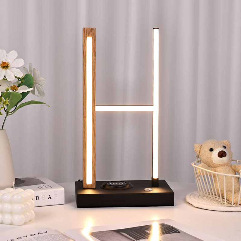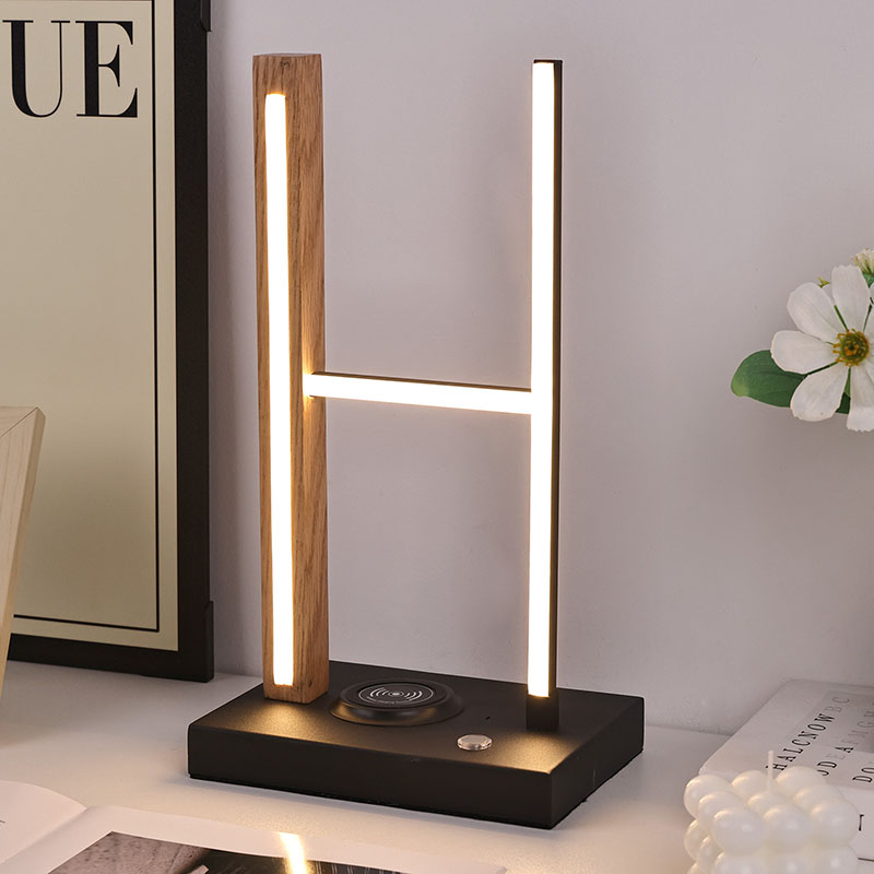 H na base de madeira do abajur de mesa, o abajur LED com carregador sem fio com abajur de bola de vidro é uma luz quente LED.