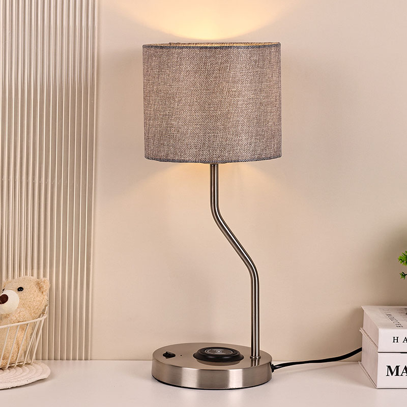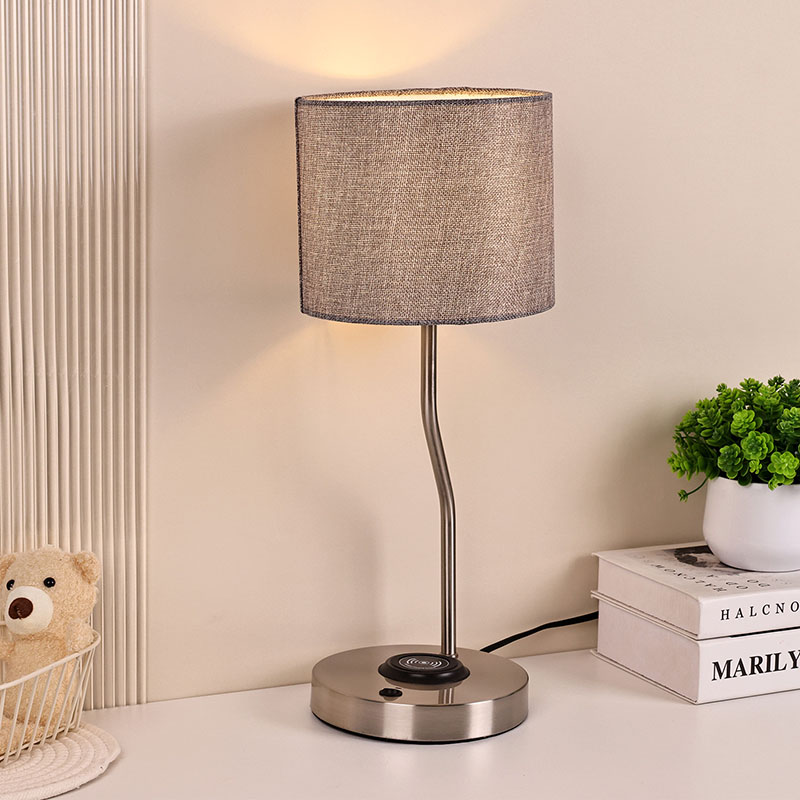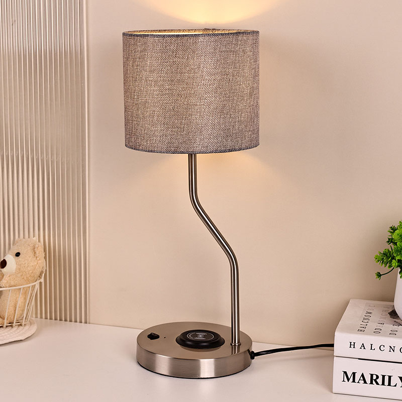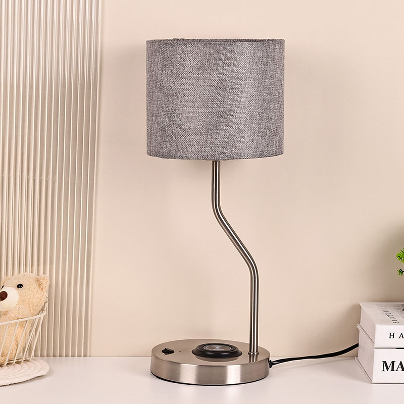 Lâmpada de mesa para carregador de telefone sem fio com abajur de tecido tem lâmpada de carregador sem fio de tensão 5V1A