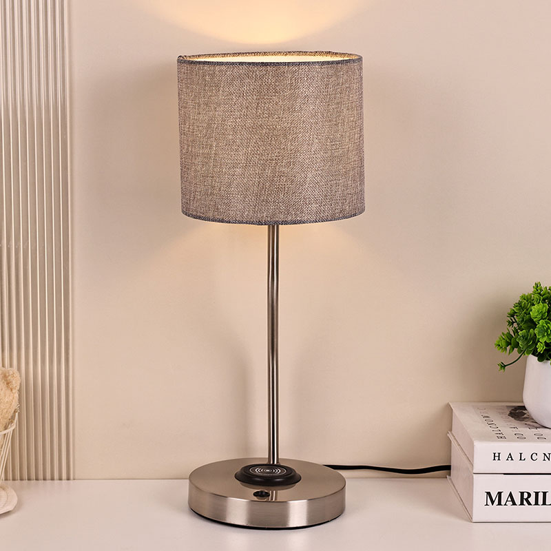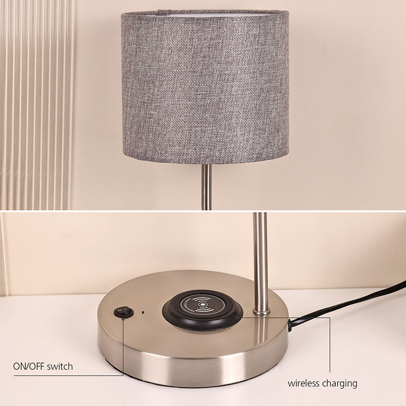 lâmpada de mesa com carregador de telefone sem fio com abajur de tecido feito com abajur de tecido tradicional